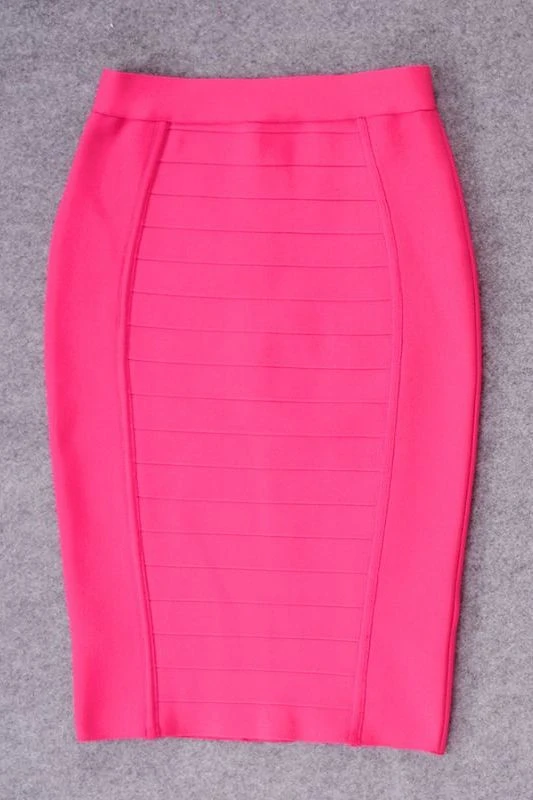 PENCIL HIGH WAIST BANDAGE KNEE LENGTH COCKTAIL SKIRT IN HOT PINK