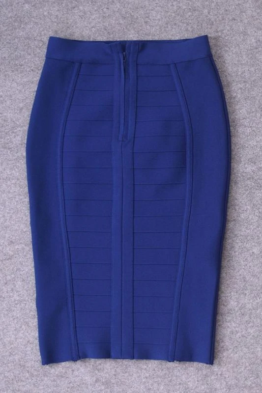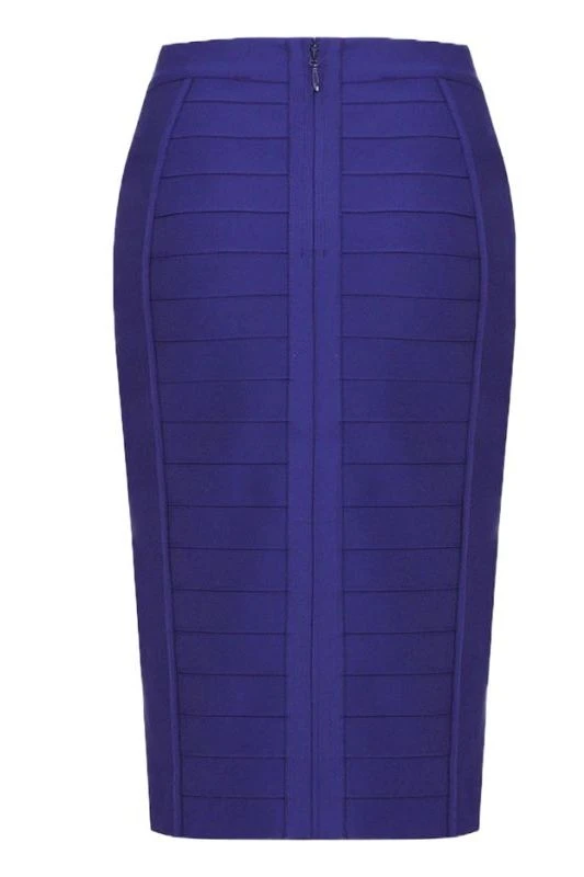 PENCIL HIGH WAIST BANDAGE KNEE LENGTH COCKTAIL SKIRT IN NAVY BLUE
