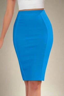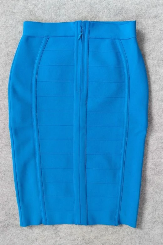 The iconic cocktail high waist Pencil Bandage Knee Length Cocktail Skirt in Sky Blue is perfect for work, the office or any day or night event. With large flattering bandage stripes, high waist, tight knee length finish with no slit, mini zip and constructed from thick sculpting bandage material. More on the plus size? Our bodycon skirts range in all sizes, so get that bodycon wardrobe you’ve always wanted, today.