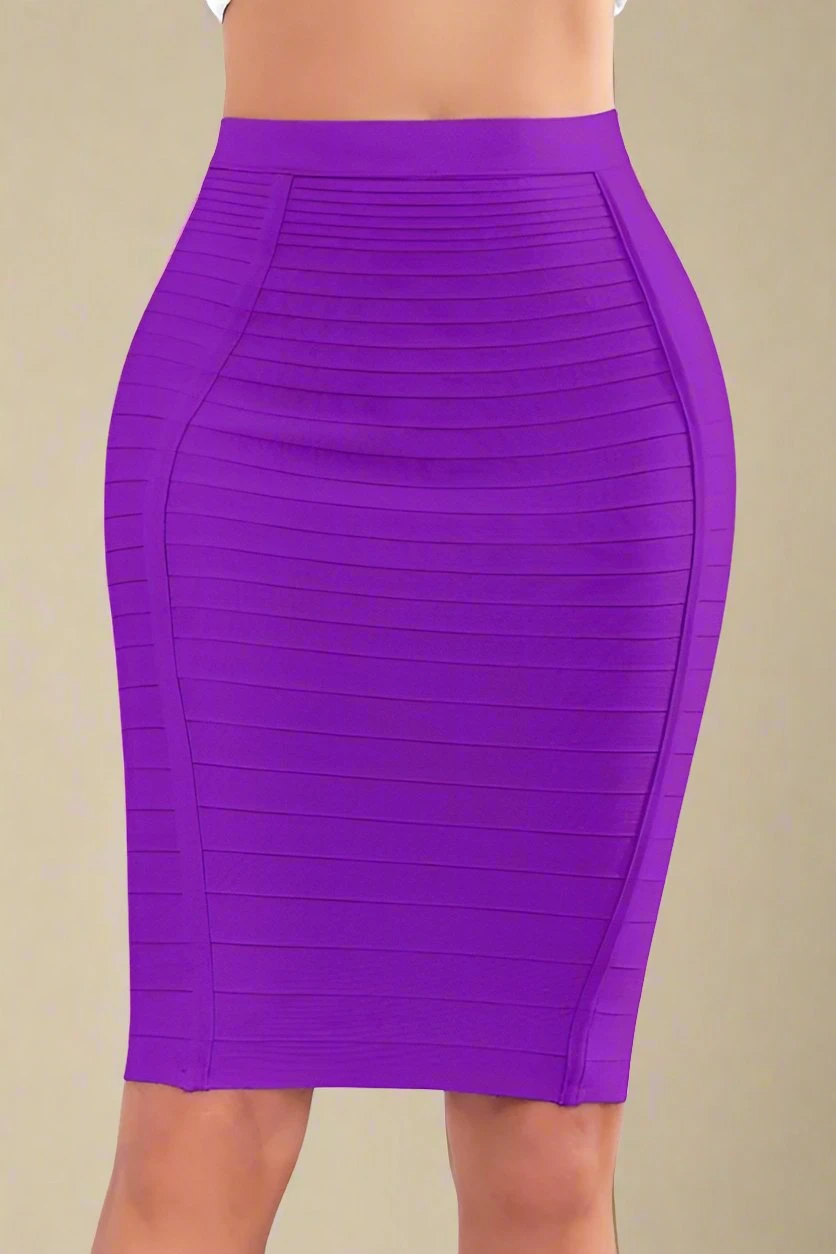 PENCIL HIGH WAIST BANDAGE KNEE LENGTH RIBBED SKIRT IN PLUM PURPLE