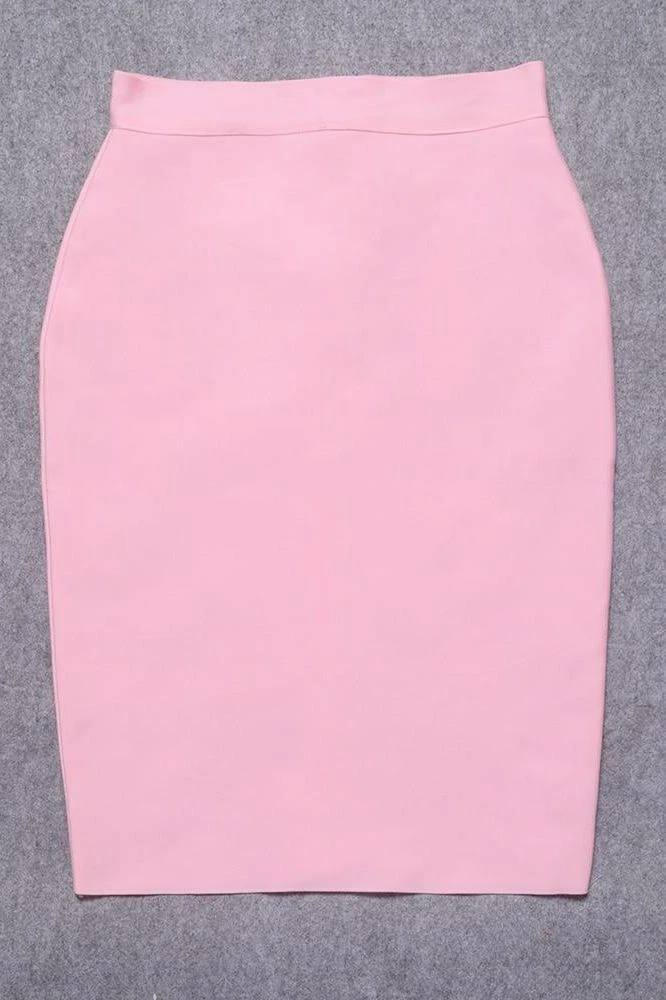 PENCIL HIGH WAIST BANDAGE KNEE LENGTH SKIRT IN BLUSH PINK