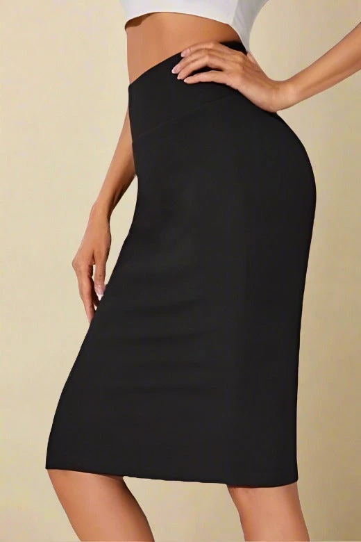 PENCIL HIGH WAIST BANDAGE KNEE LENGTH SKIRT IN CLASSIC BLACK