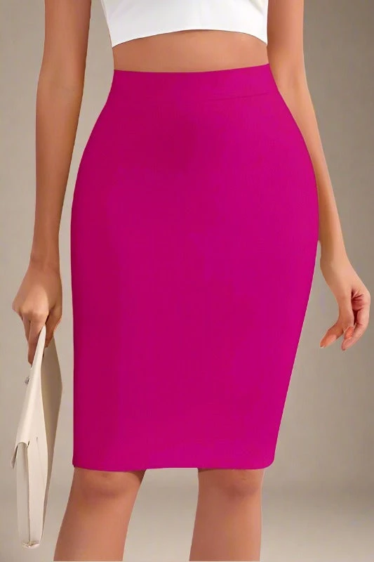 PENCIL HIGH WAIST BANDAGE KNEE LENGTH SKIRT IN MAGENTA
