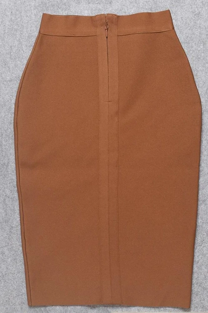 PENCIL HIGH WAIST BANDAGEÂ KNEE LENGTH SKIRT INÂ TAN