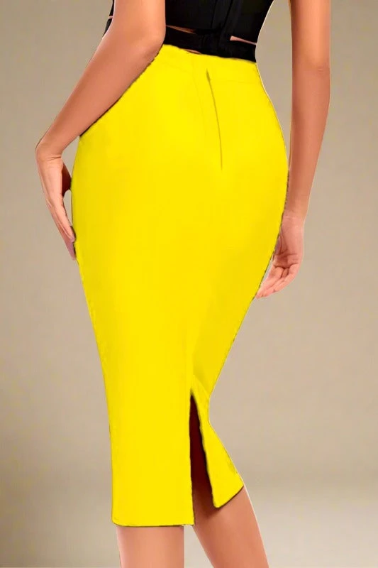 PENCIL BANDAGE MIDI SKIRT IN SUN YELLOW