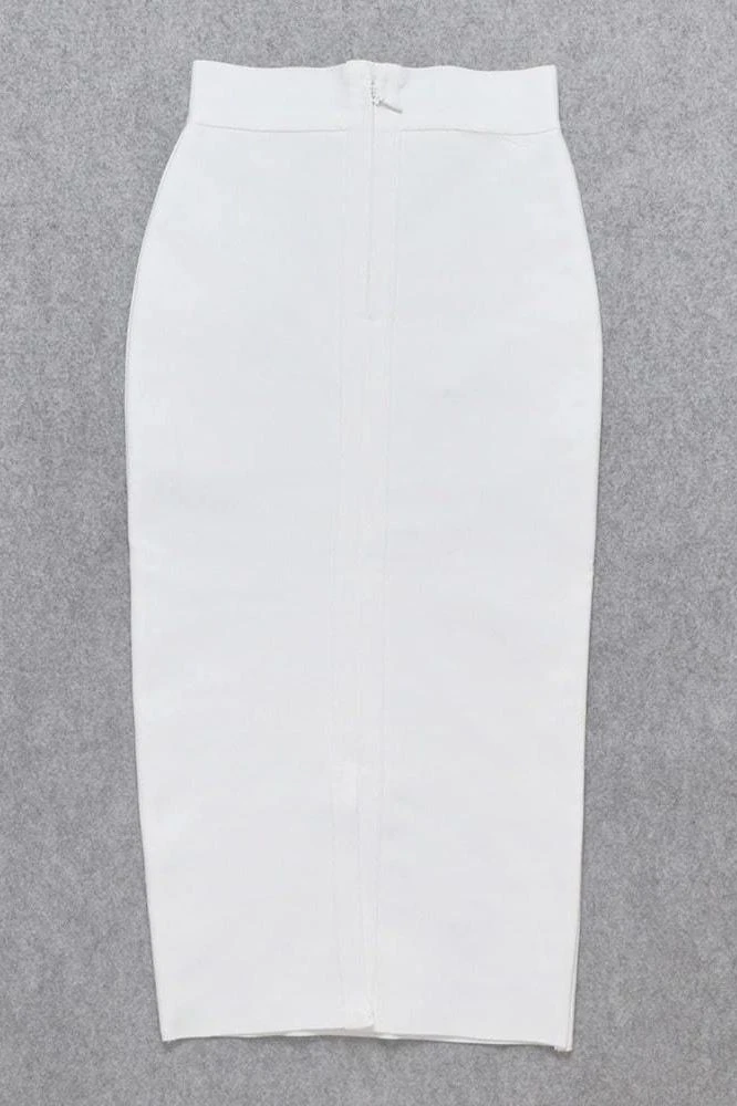 PENCIL BANDAGE MIDI SKIRT IN WHITE PEARL
