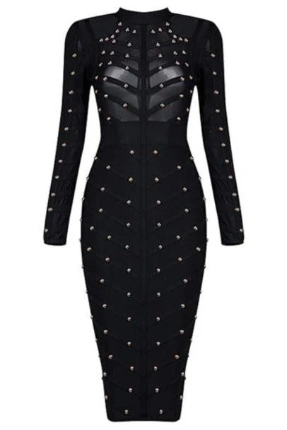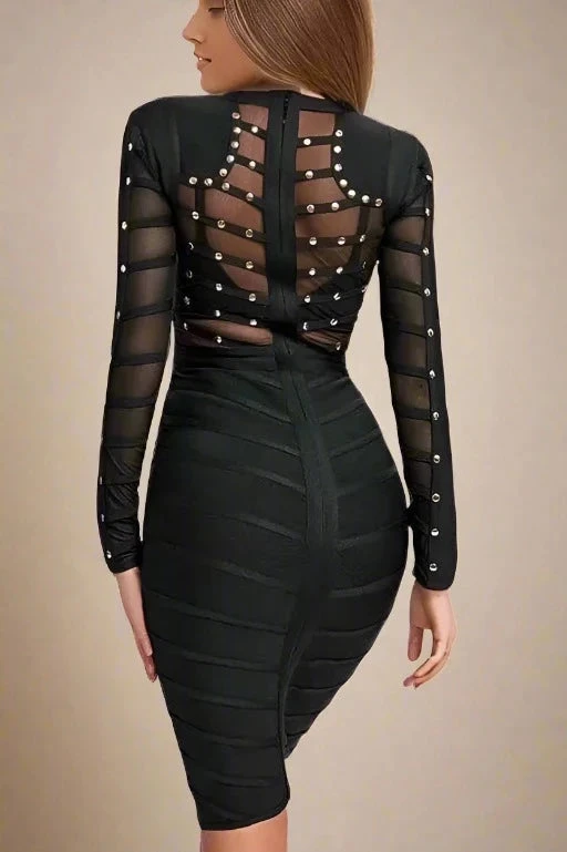 ROSA HIGH NECK LONG SLEEVE BANDAGE DRESS IN CLASSIC BLACK