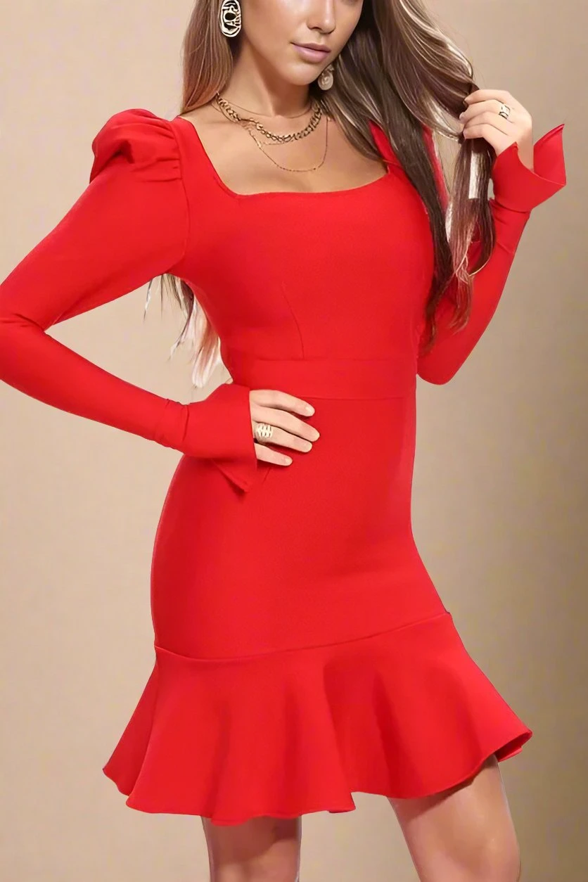 The Sara Long Sleeve Bodycon Mini Dress in Lipstick Red is perfect for any special event with flattering long sleeves with open cuffs, a square collar, and a cute mini-length skirt with ruffles. More on the plus size? Our bodycon dresses range in all sizes, so get that bodycon wardrobe you’ve always wanted, today.
