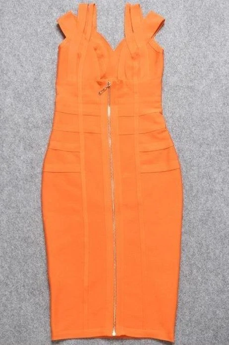 The Sia V Neck Bandage Midi Dress in Apricot Orange is perfect for any special event with flattering V neck, dual side straps, sculpting bandage bodice and above-knee length finish. More on the plus size? Our bodycon dresses range in all sizes, so get that bodycon wardrobe you’ve always wanted, today.