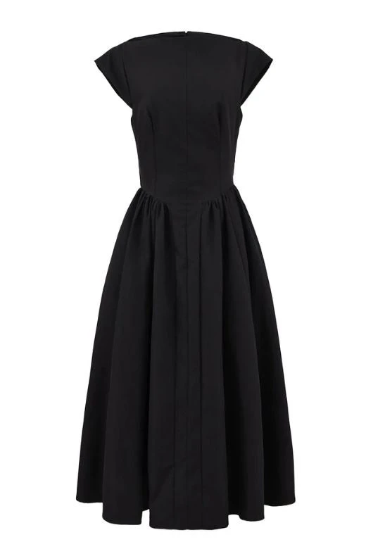 The Stella Bodycon Midi Dress in Classic Black features capped sleeves, a flattering bodice with a high neck, open back detailing, a fitted waist, and a full bodied pleated A-line midi skirt, making it the perfect choice for a special cocktail event. Our bodycon dresses come in a variety of sizes to suit all body types, so you can achieve that bodycon wardrobe you’ve always desired.