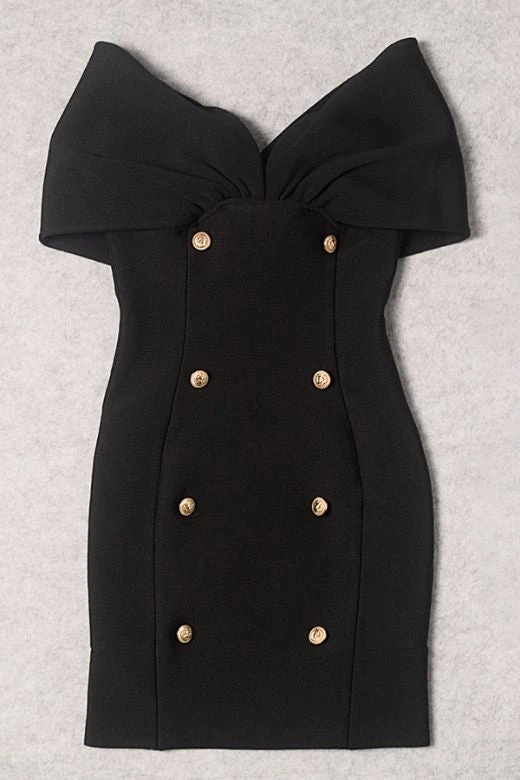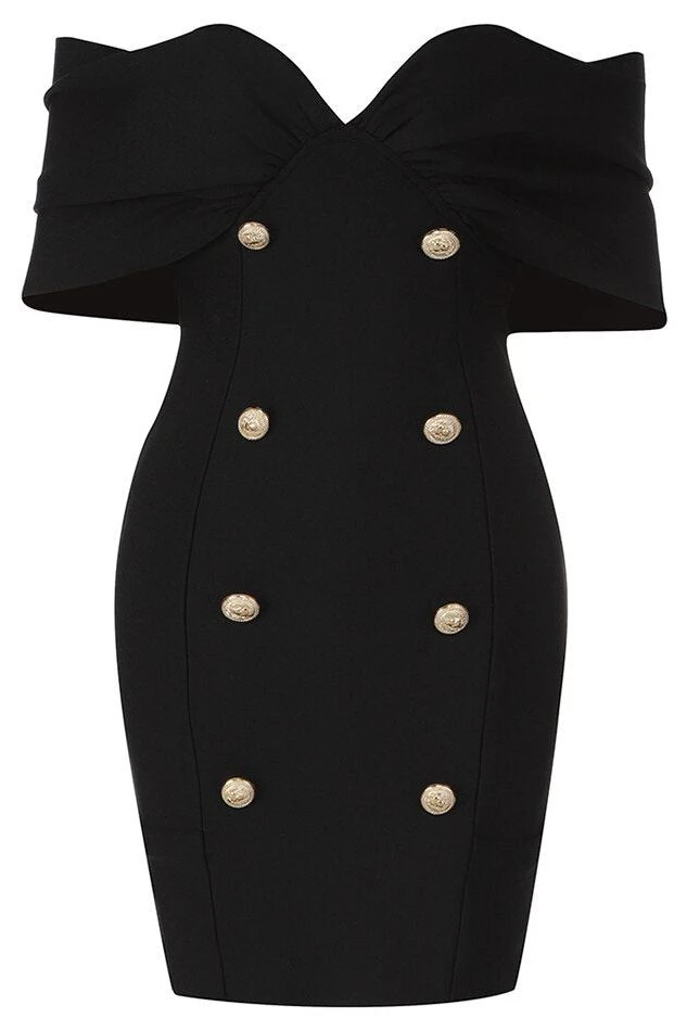 TANYA OFF SHOULDER BANDAGE MINI DRESS IN CLASSIC BLACK