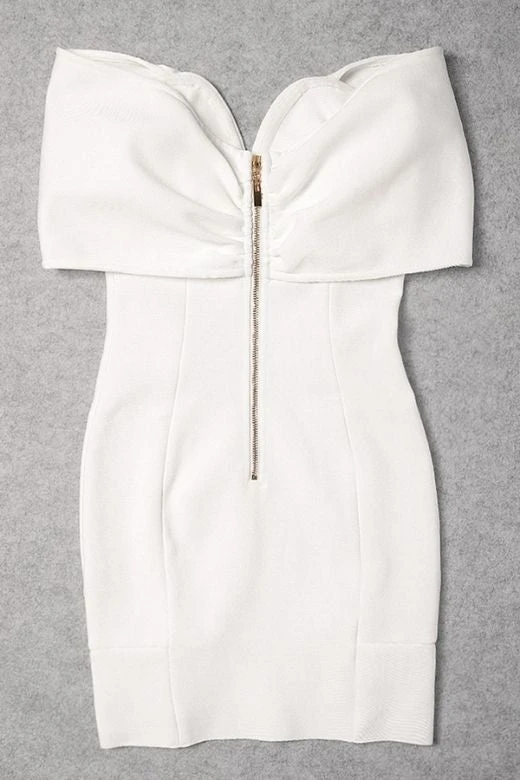 TANYA OFF SHOULDER BANDAGE MINI DRESS IN WHITE PEARL