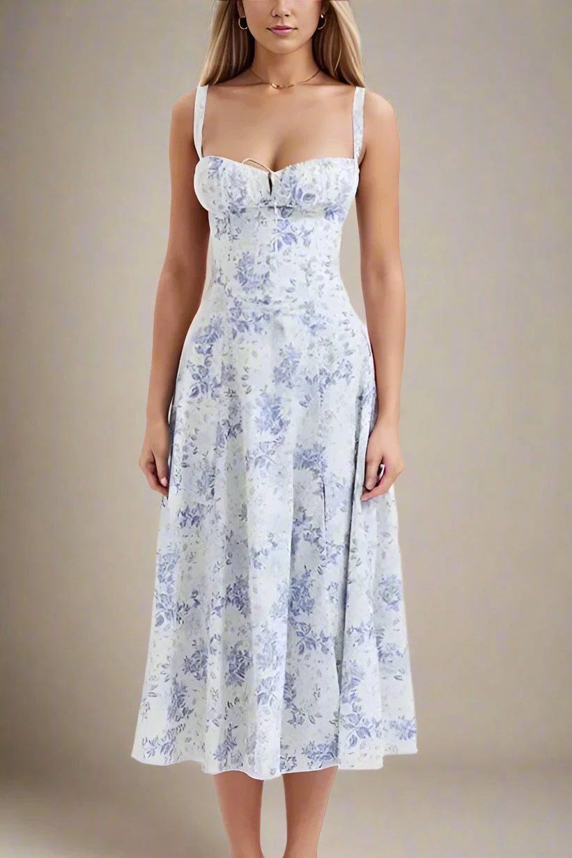 The Taylor Bodycon Day Midi Dress in Floral Azure Blue is an ideal choice for warm weather dressing. It features thick spaghetti straps, a sweetheart neckline, a lace-up back, and an a-line skirt with a midi length finish. Plus, our bodycon dresses are available in a range of sizes, so you can achieve the bodycon wardrobe you’ve been dreaming of.Â