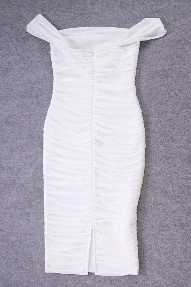ZIA OFF SHOULDER BODYCON DRESS IN RED WINE