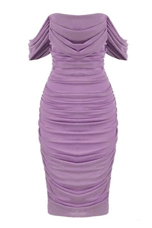 ZIA OFF SHOULDER BODYCON DRESS IN VIOLET PURPLE