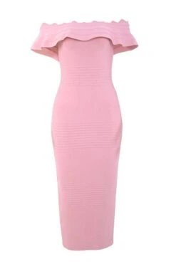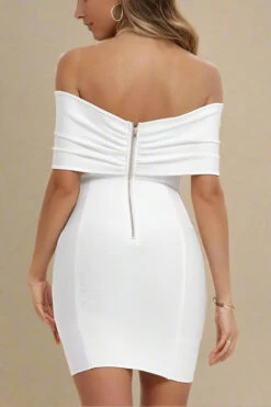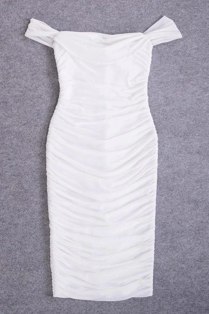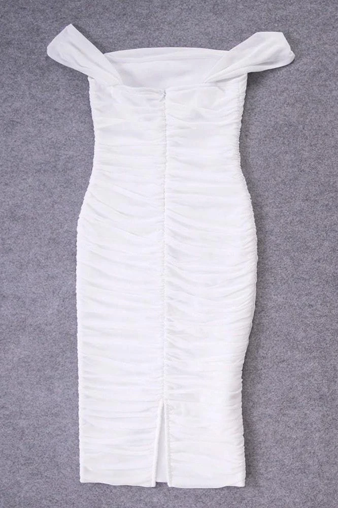 ZIA OFF SHOULDER BODYCON DRESS IN WHITE PEARL